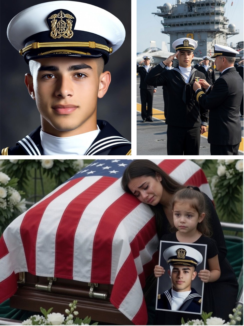Today, a nation pauses in solemn reflection as 27-year-old U.S. Navy sailor Alex is brought home after making the ultimate sacrifice in service to his country. His flag-draped casket arrives not only as a symbol of honor, but as a reminder of the profound cost carried by those who serve. Behind him, he leaves a young wife and their three-year-old child—an unfinished story now carried forward by love, memory, and resilience.