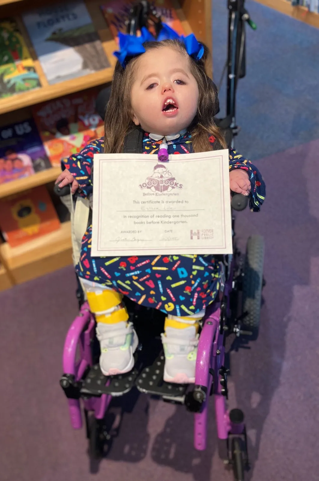This unexpected shift transformed everything. By the age of three, Esther had listened to more than 1,000 books. Through stories, she began to explore a world she had once been unable to reach. Words became her guide, imagination her freedom, and each story opened a new door to understanding life beyond her condition.
