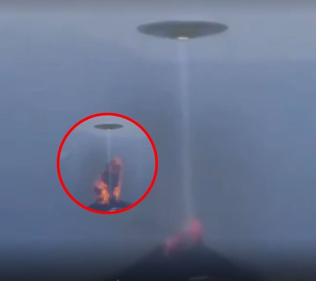 Disc-Shaped UFO Seen Above Erupting Volcano