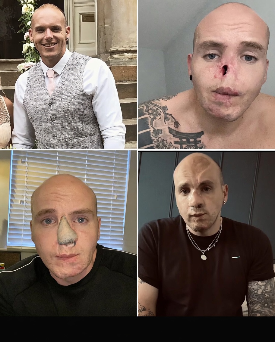 Over the next five years, he underwent around 10 major operations, as surgeons worked to rebuild his face using skin grafts and bone from other parts of his body.