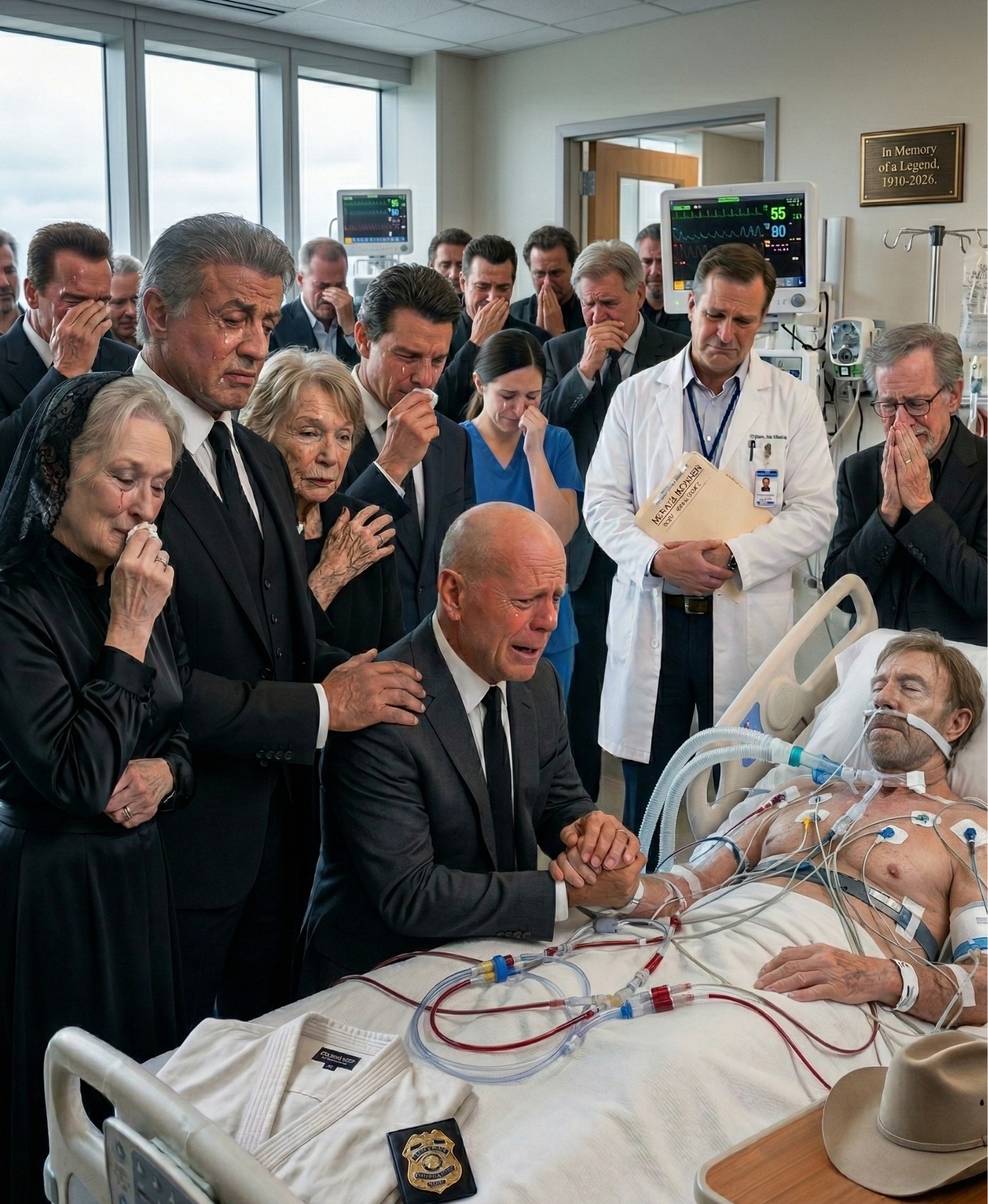 Take a close look at this room. The faces gathered here are not just actors; they are the architects of our memories, men who helped shape generations of cinema, one unforgettable blockbuster at a time. Today, however, the atmosphere is different. The lights feel dimmer, the silence heavier. The world has paused to acknowledge the passing of one of the greatest icons to ever grace the screen.