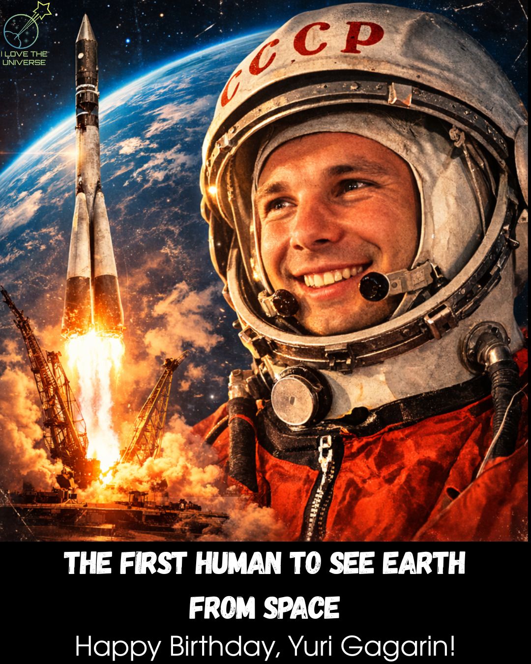 On April 12, 1961, aboard the spacecraft Vostok-1, Gagarin became the first human to travel into space. For 108 minutes he orbited our planet and saw something no human had ever seen before — Earth from space.