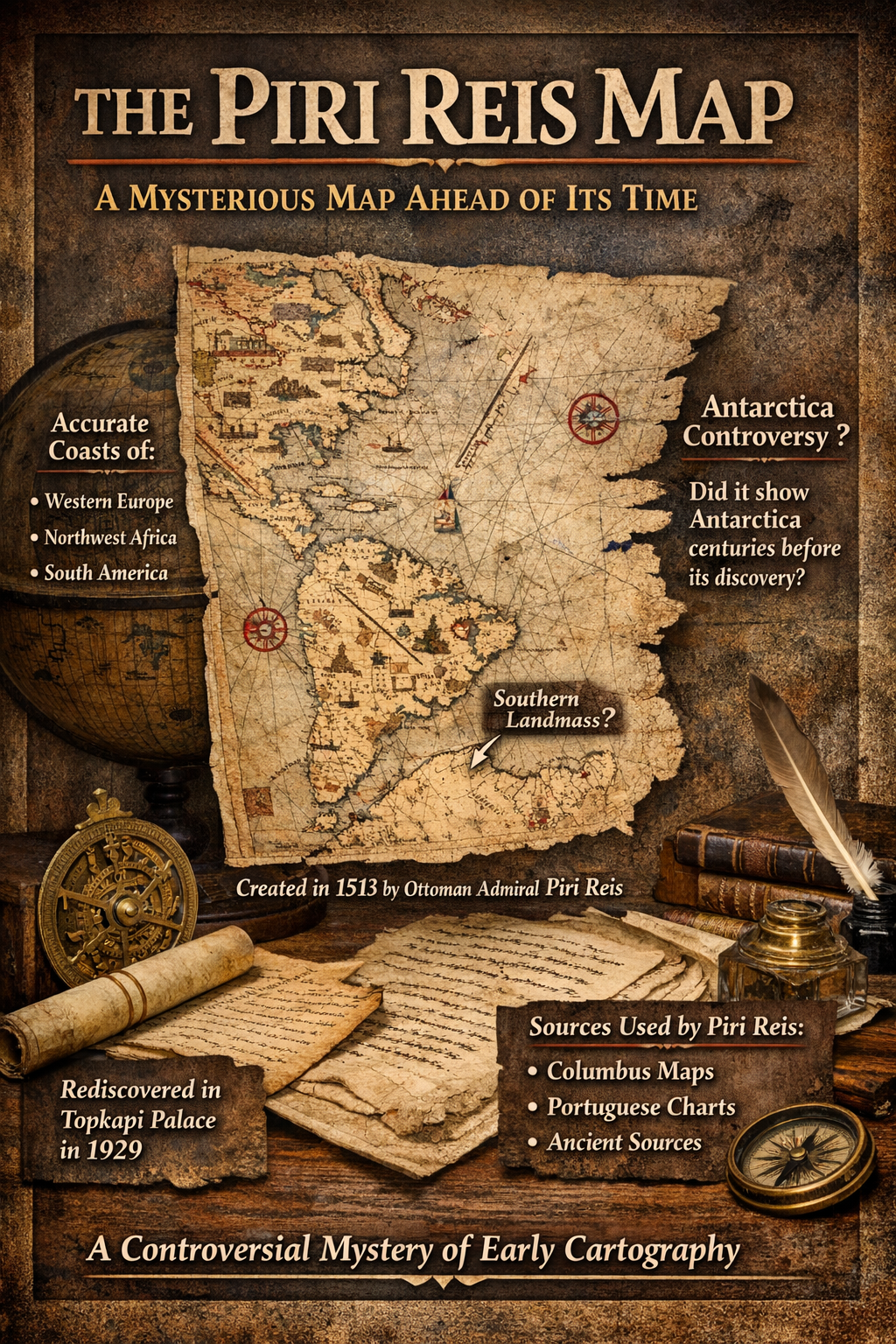 More than 500 years after its creation, the Piri Reis Map continues to fascinate historians, geographers, and mystery enthusiasts.