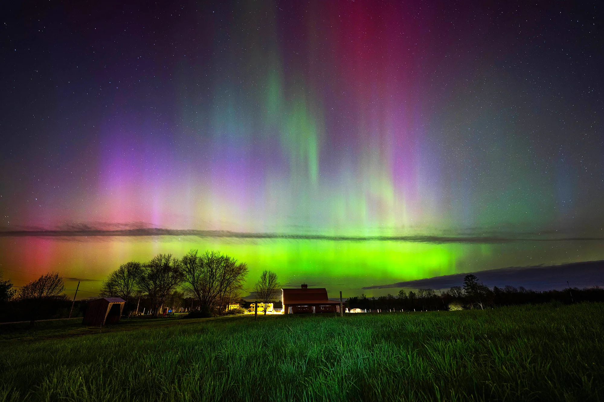 A strong G4 geomagnetic storm, driven by intense solar activity, compressed Earth’s magnetosphere and funneled charged particles into the upper atmosphere at mid-latitudes. This allowed the Northern Lights—often nicknamed the “Green Lady” for their characteristic emerald glow—to shine brightly enough to be seen with the naked eye, even from light-polluted areas.