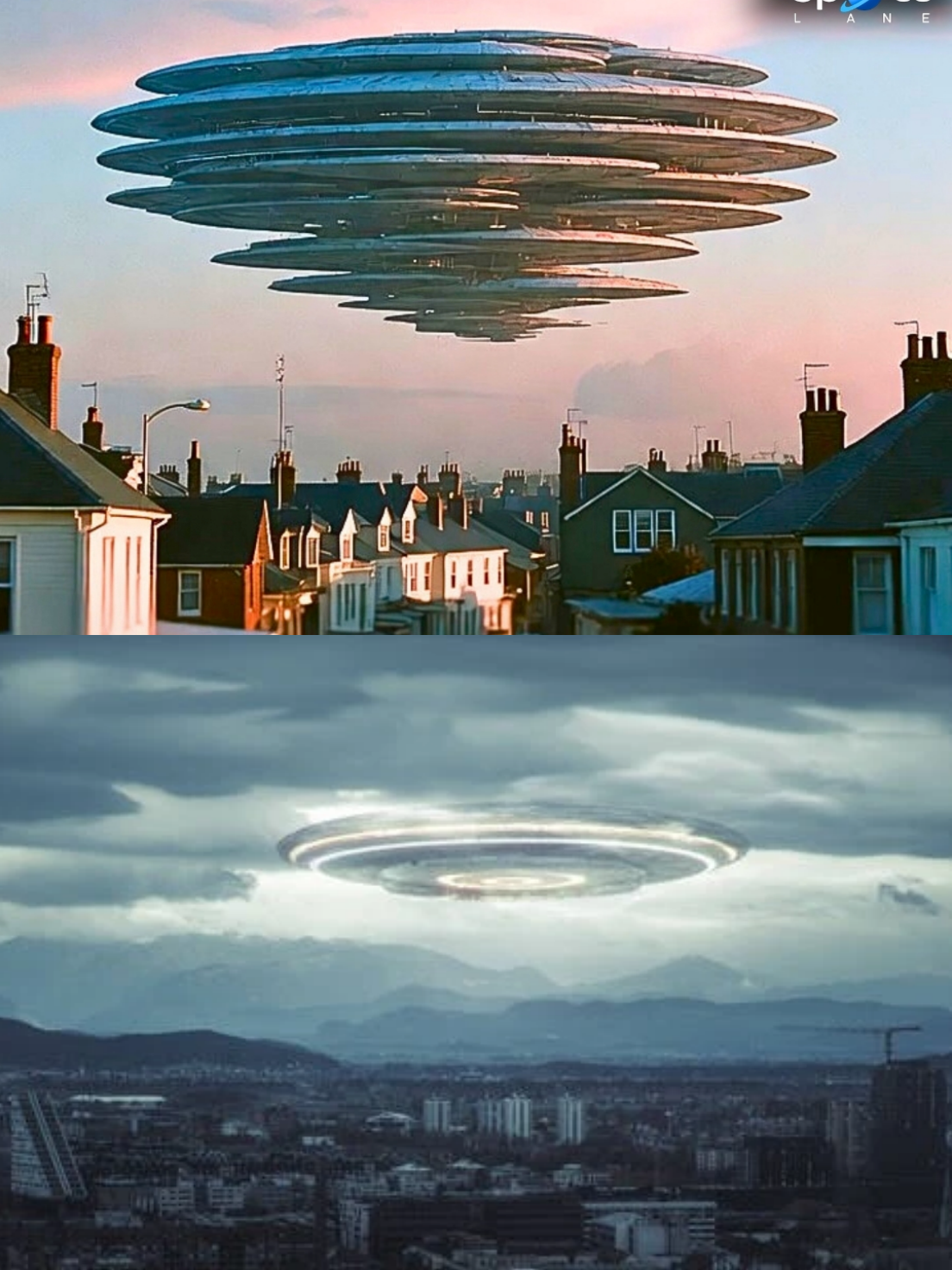 In a quiet area, people start noticing something unusual in the sky. At first, it looks like a large object floating far above the ground. But as they look closer, they realize it is not a simple shape. The object has multiple layers stacked together in a complex structure.
