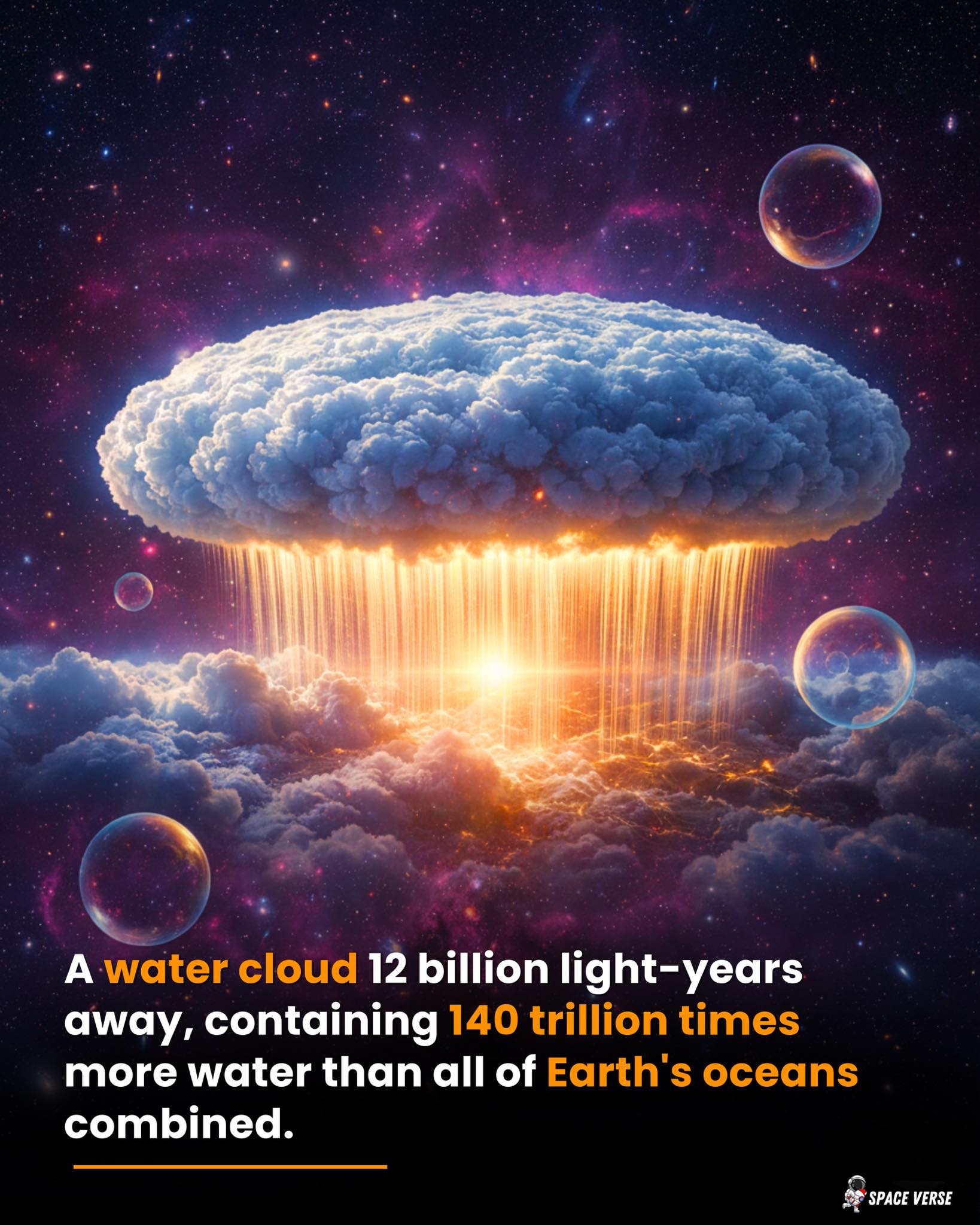 Billions of light-years away, water drifts through space in unimaginable abundance — a silent reminder that the universe is older, larger, and more mysterious than we can fully comprehend.