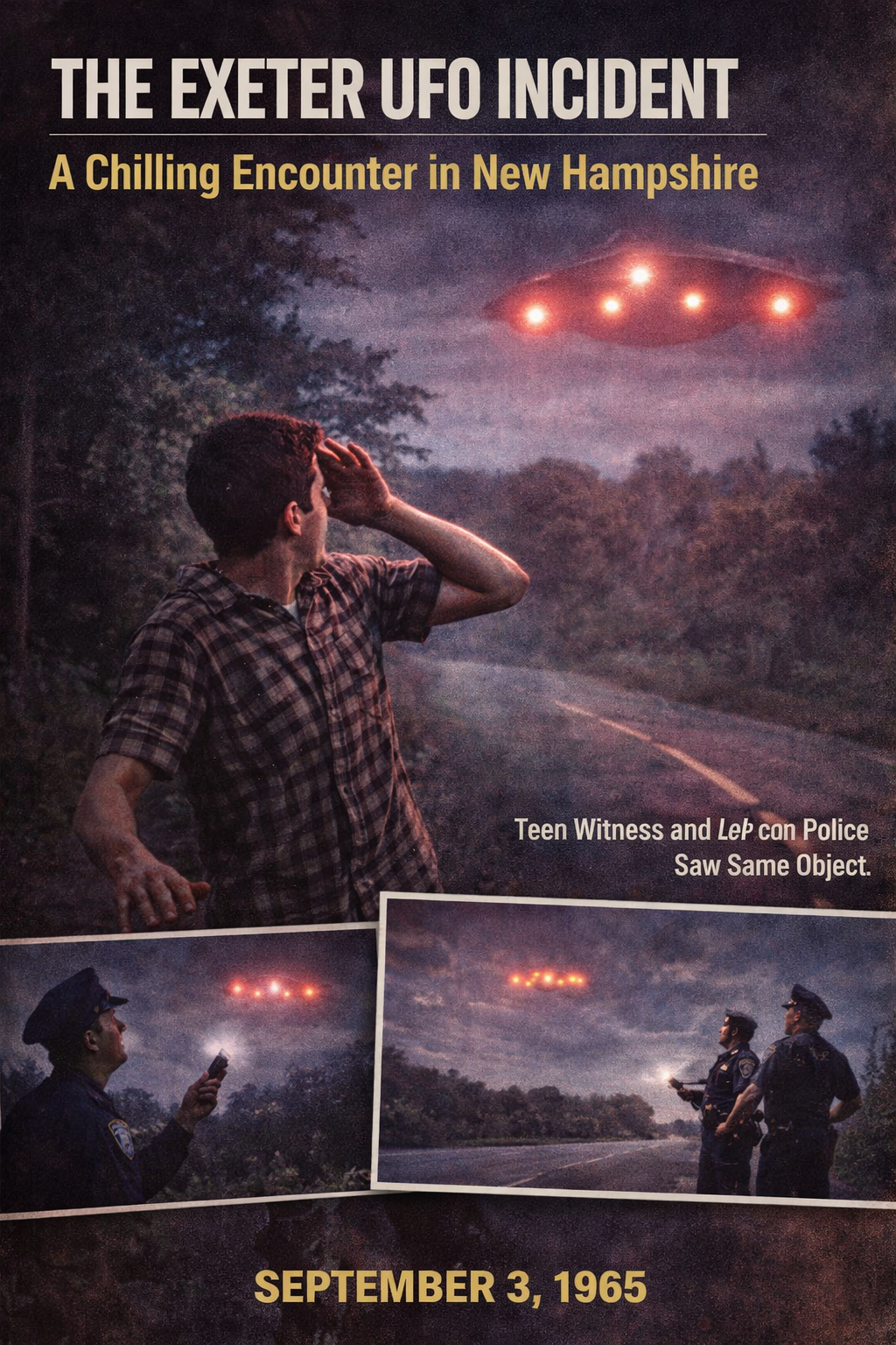 In the early hours of September 3, 1965, a teenager in a quiet New England town reported a terrifying encounter that would become one of the most famous UFO cases in American history. Known as the Exeter UFO Incident, the event gained national attention due to multiple witnesses and detailed testimony.