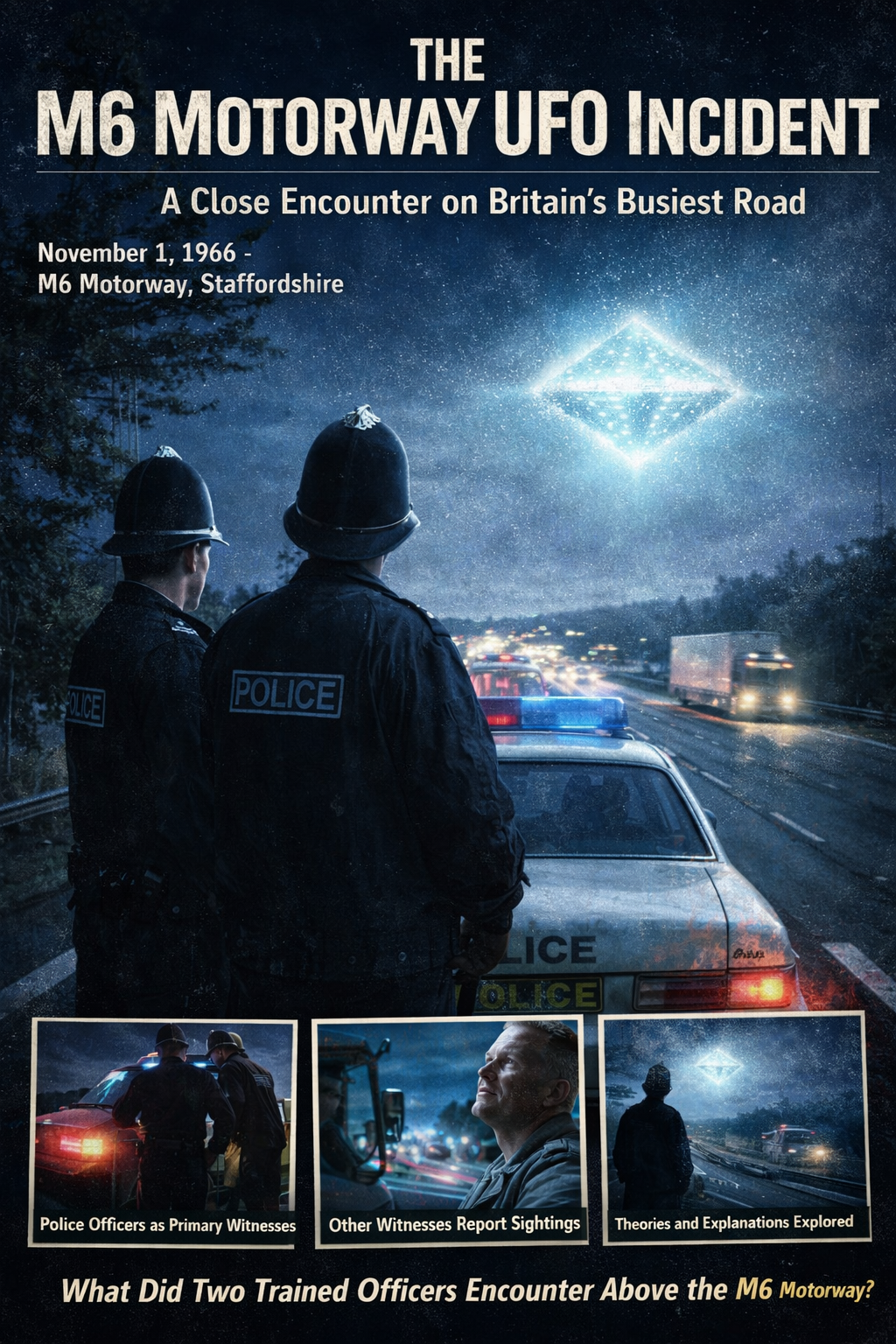 In the early hours of November 1, 1966, a police patrol on one of Britain’s major highways reported an extraordinary encounter with a mysterious flying object. Known as the M6 Motorway UFO Incident, the event remains one of the United Kingdom’s most credible UFO sightings due to the involvement of trained law enforcement officers.