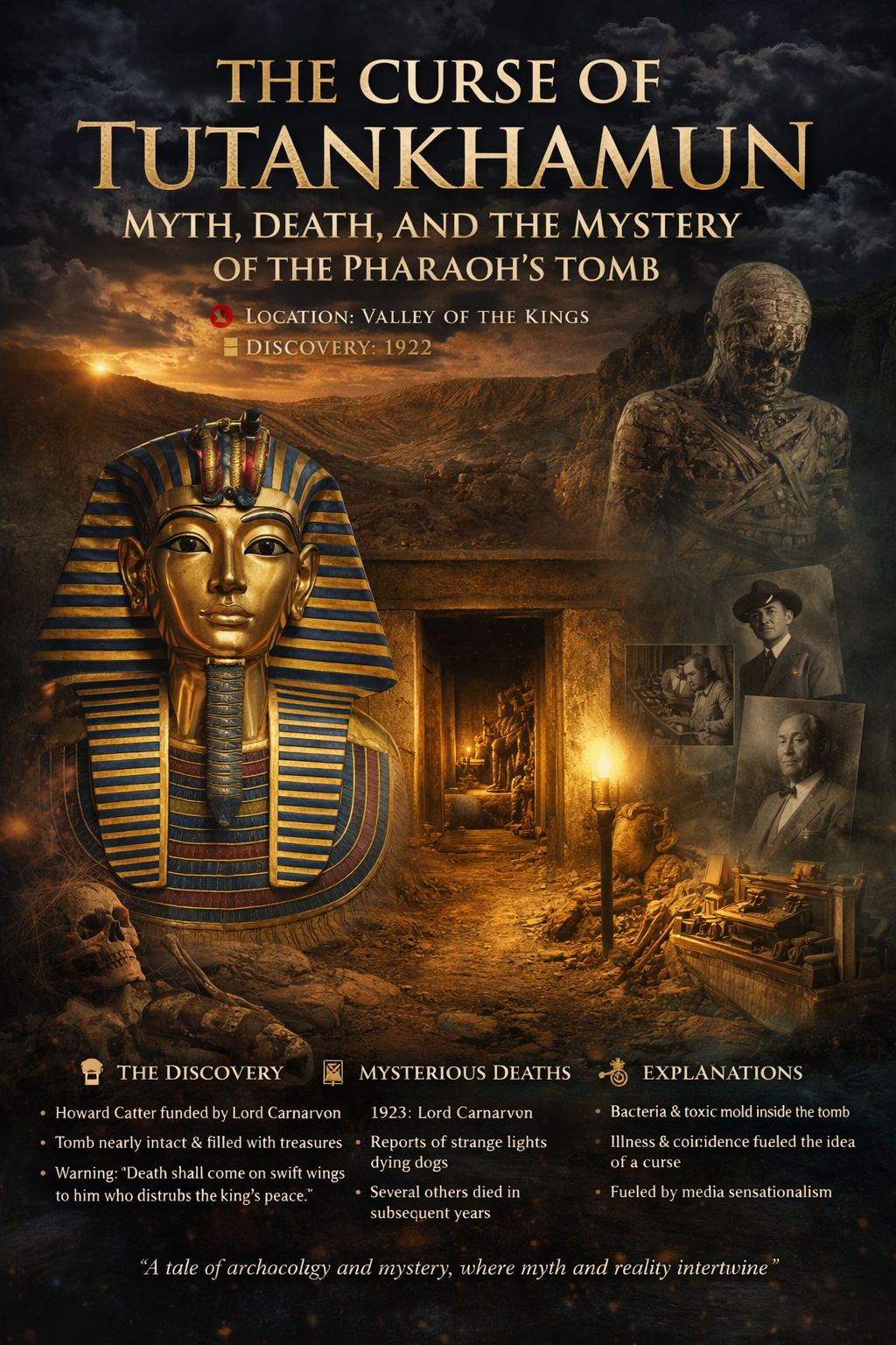 The Curse of Tutankhamun sits at the intersection of history, myth, and media. While science offers logical explanations, the mystery surrounding the deaths and eerie coincidences continues to capture the imagination.