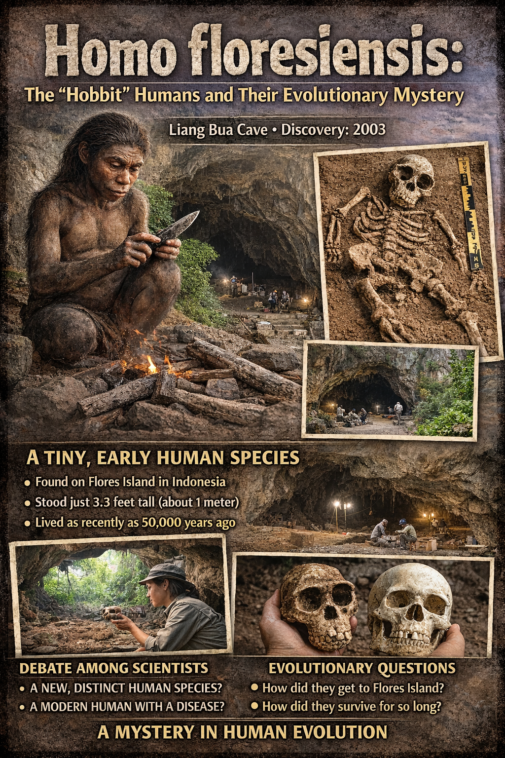 In 2003, archaeologists uncovered one of the most surprising discoveries in human evolution—a tiny human-like species on a remote Indonesian island. Named Homo floresiensis, these individuals were nicknamed “Hobbits” due to their small size.