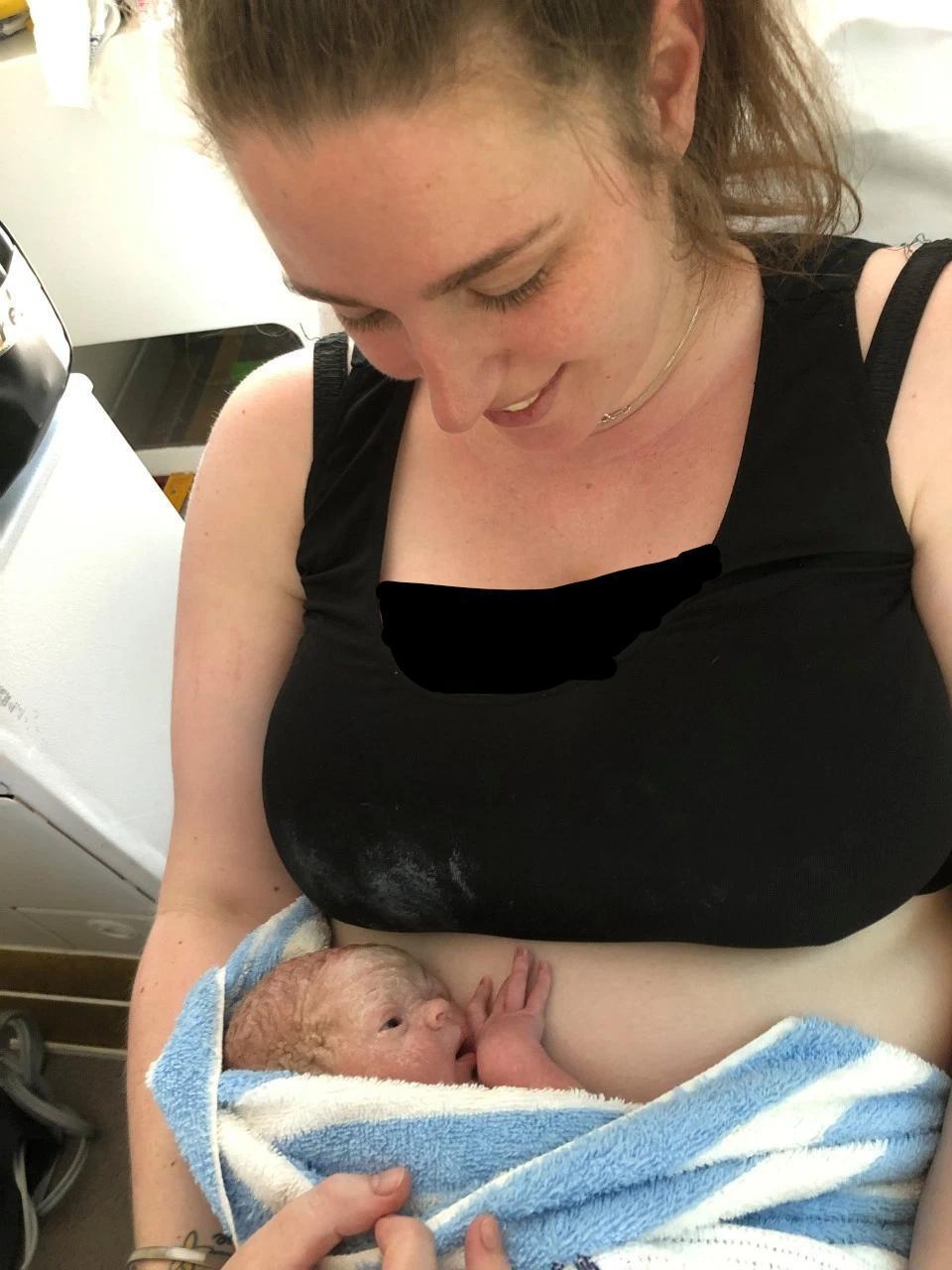 Within minutes, her baby boy was born into her own trembling hands. Drawing on instinct and determination, Sandra lifted him gently to her chest, wrapping him in a bath mat to keep him warm while waiting for medical help to arrive. The newborn, delivered at just 34 weeks, was fragile but resilient, showing remarkable strength from his very first breath.
