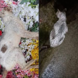 Sick stray kitten sat with its head down, waiting for death—until fate sent  an angel its way.
