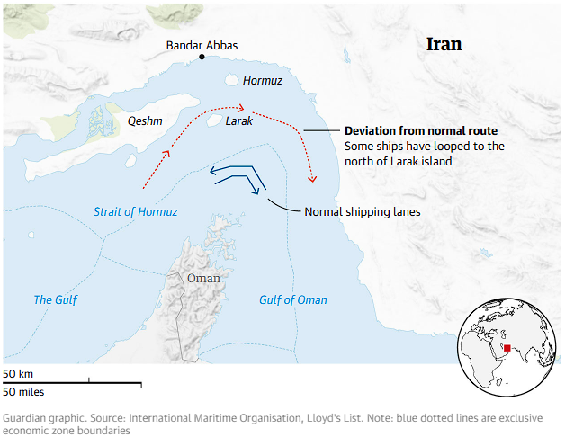 It is unclear at this stage whether Iran is requiring payment for safe passage; at least two vessels have paid to transit the strait, according to Lloyd’s List analysts, with one of the payments reportedly as high as $2m (£1.5m) for a VLCC (very large crude carrier).