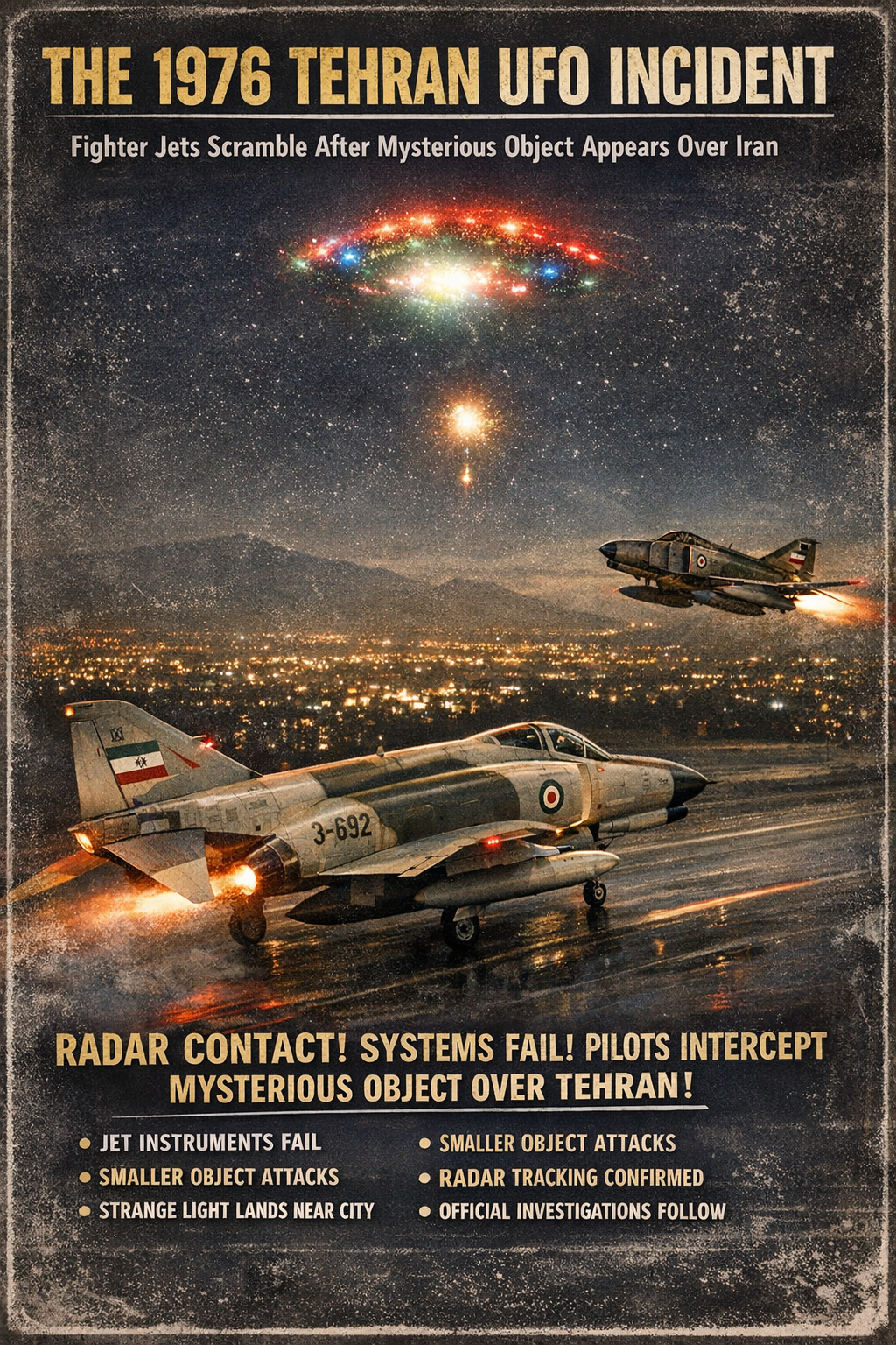 Nearly five decades later, the 1976 Tehran UFO incident remains one of the most debated UFO cases in aviation history. The combination of civilian sightings, radar tracking, and fighter jet encounters has kept the mystery alive among researchers and historians of unexplained aerial phenomena.