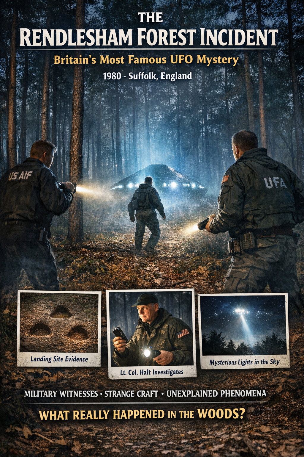 In late December 1980, a quiet woodland in Suffolk, England, became the center of one of the most debated UFO cases in modern history. Known as the Rendlesham Forest incident, the event involved multiple sightings of mysterious lights and an alleged unidentified flying object witnessed by U.S. military personnel stationed at nearby Royal Air Force bases.