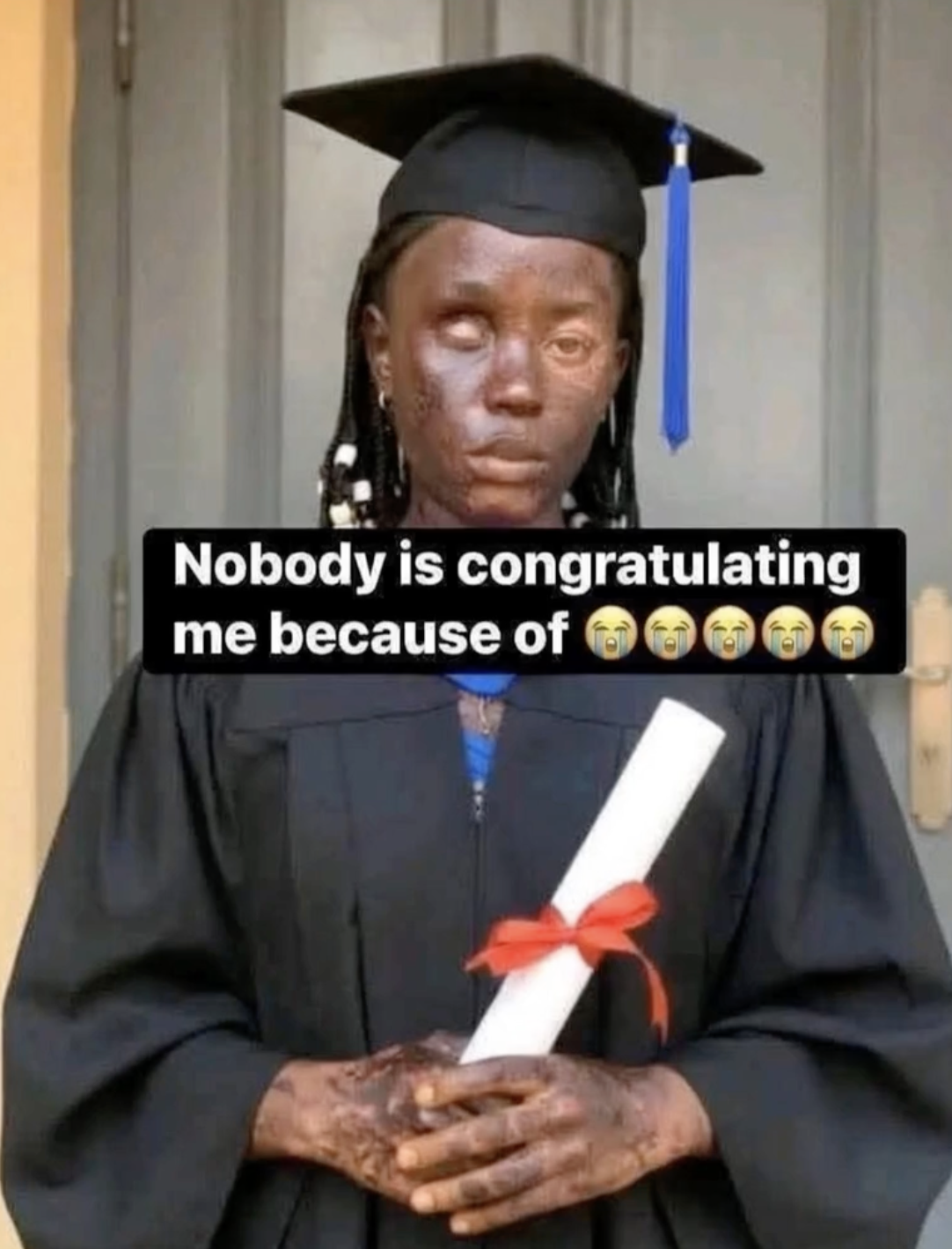The image is striking: a young woman stands in her cap and gown, clutching a diploma that represents years of sacrifice, late-night study sessions, and the weight of a thousand “almosts.” But as she looks into the distance, there are no cheering families, no bouquets of flowers, and no cameras flashing from the sidelines.