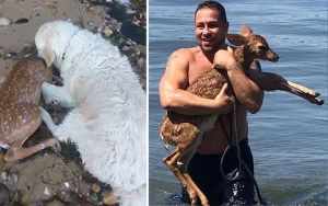 The ending of the encounter was perhaps the most beautiful part of the journey. The deer gave a sudden, graceful leap toward the safety of the woods, but before disappearing, it stopped. It turned back one last time, and for a fleeting moment, their eyes met. In that silent gaze, there was no need for words; it felt like a profound “thank you” echoing between two hearts. As the fawn vanished into the shadows of the trees, it left behind a man who would never look at a quiet afternoon the same way again. It serves as a powerful reminder for us all: sometimes, the smallest acts of kindness are the ones that save a life and change our own in the process.