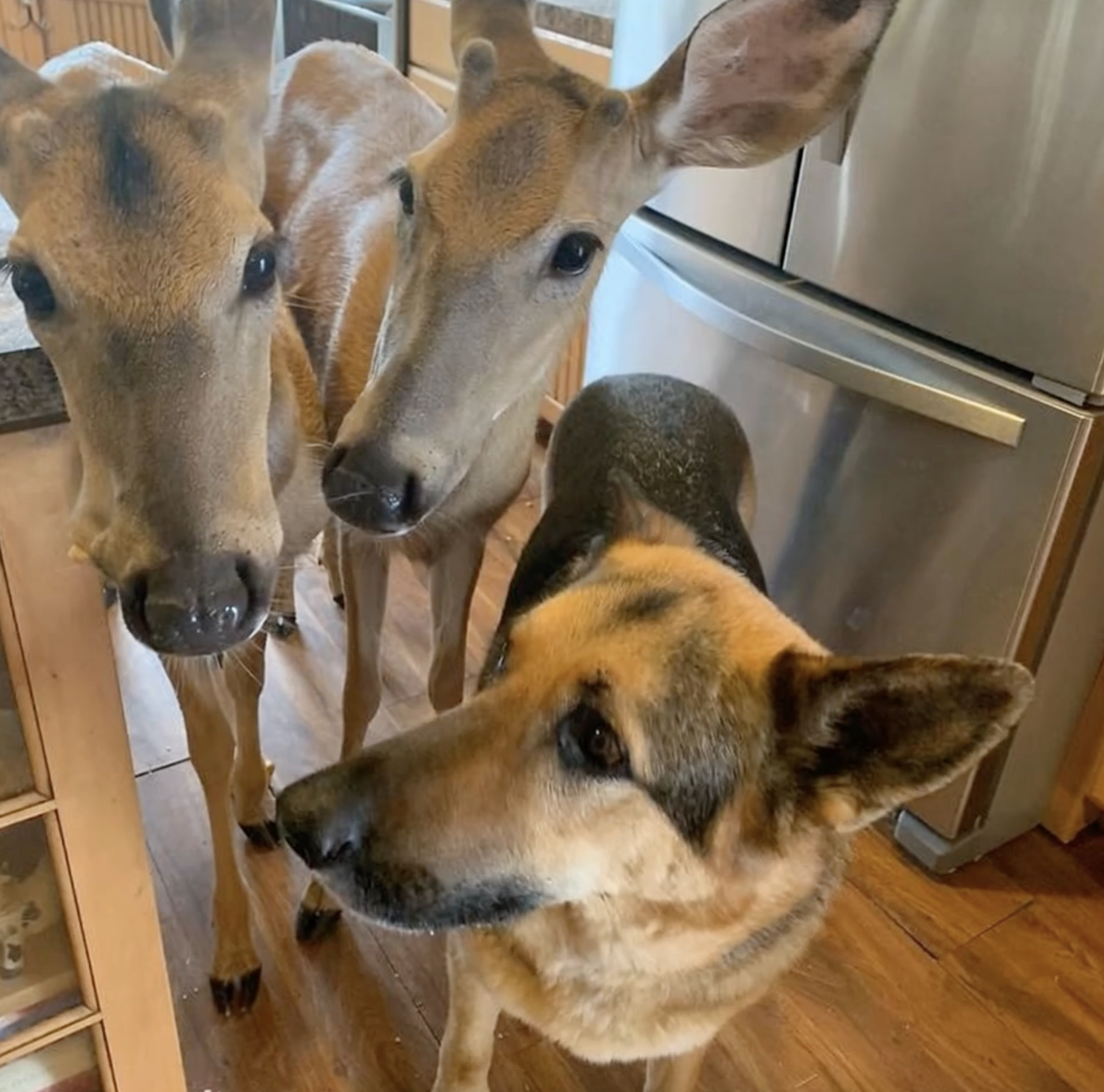The bond between Sarge and the orphaned fawns is nothing short of miraculous. They move through the farm in a constant state of play and affection, rarely leaving each other’s side. What is most striking—and perhaps rarest for a German Shepherd—is Sarge’s willingness to share his food with his deer companions. He has taken it upon himself to be the “big brother” of the herd, even going as far as “training” the fawns in the daily routines of the farm. From guarding the gates to curling up together for a nap, their lives are a beautiful, tangled mess of fur and fawns.