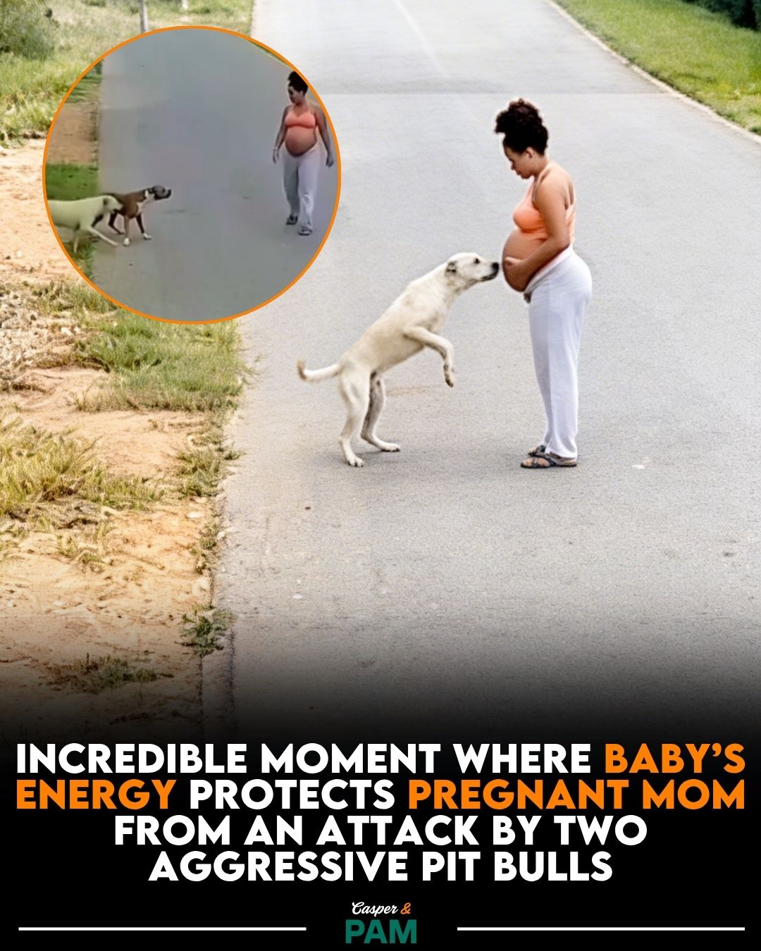 In a moment that could have ended in fear and tragedy, an ordinary day turned into something deeply unforgettable. A pregnant woman found herself suddenly confronted by two aggressive pit bulls, their presence tense and unpredictable. Witnesses held their breath, expecting the worst as the animals drew closer, their behavior raising immediate concern.