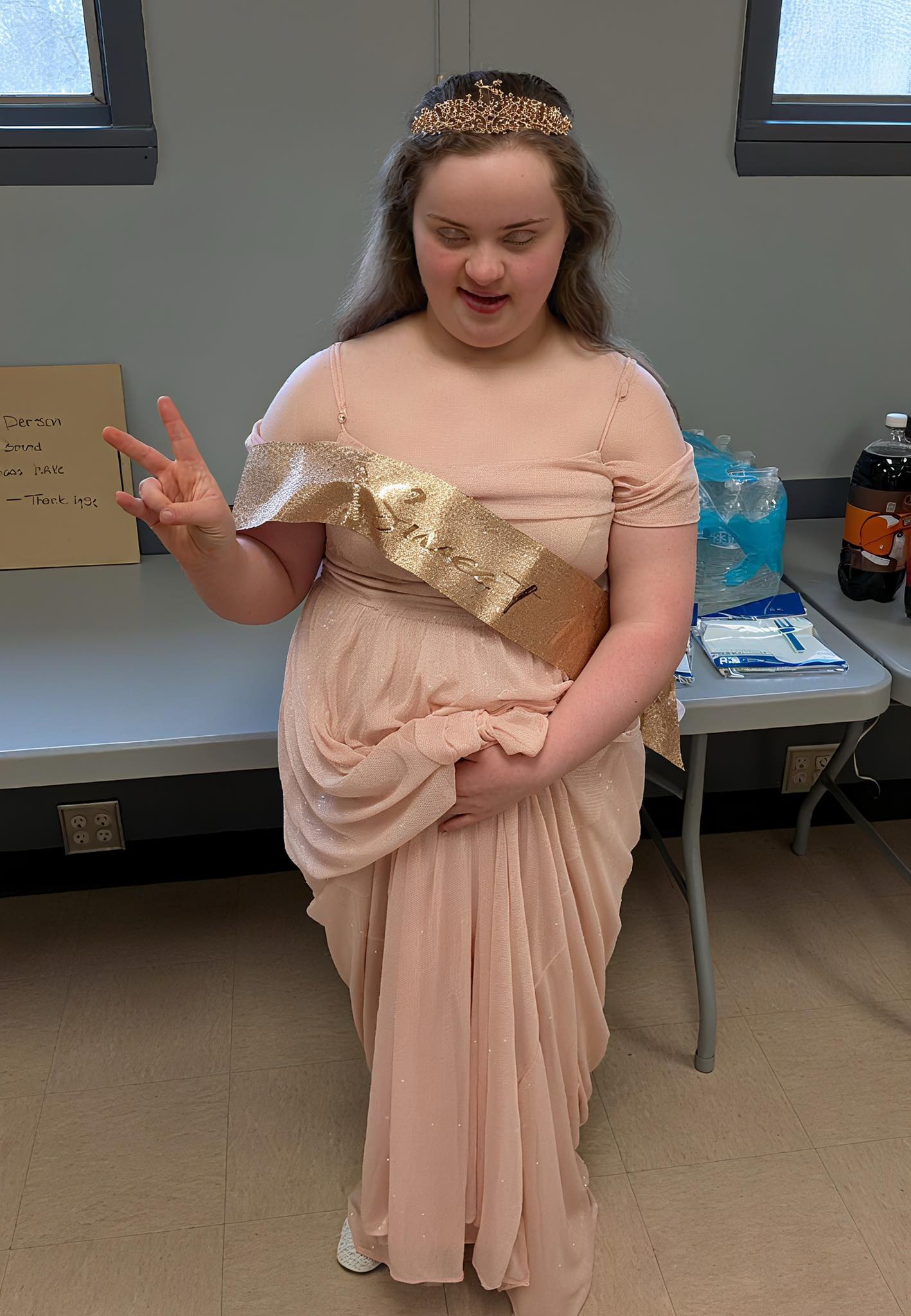 She didn’t need a grand stage, a velvet curtain, or the blinding glare of spotlights to command the room. Standing in a simple space, she possessed a presence that looked like true royalty. The soft pink dress flowed around her like a gentle promise, and the small golden crown resting upon her head was far more than a mere accessory. It was a sacred symbol of something earned through quiet courage and a heart that stubbornly refused to feel like “less than.” In that moment, the room was transformed into a throne room, not by architecture, but by the sheer force of her self-belief.