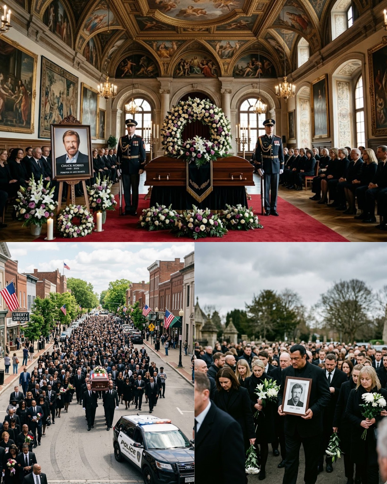 Beneath the painted ceilings of a grand hall, silence carried more weight than words. A single casket, surrounded by flowers and guarded with solemn precision, became the center of a moment that transcended fame and touched something far deeper—respect, memory, and collective grief. The portrait beside it was not just a face, but a symbol of a life that had left an undeniable mark.