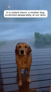When the door finally swung open, the golden light of the hallway spilled out into the dark, revealing a sight that stopped the heart. Standing there, saturated to the skin, was a Golden Retriever. Her once-lustrous coat was matted and heavy with the flood, and her frame was trembling with a bone-deep chill. But it wasn’t her physical state that commanded the room—it was her eyes. They were wide, amber pools of absolute desperation. She didn’t bolt inside for the warmth; she stood her ground, her gaze locked onto the humans in the doorway with an intensity that felt like a physical weight.