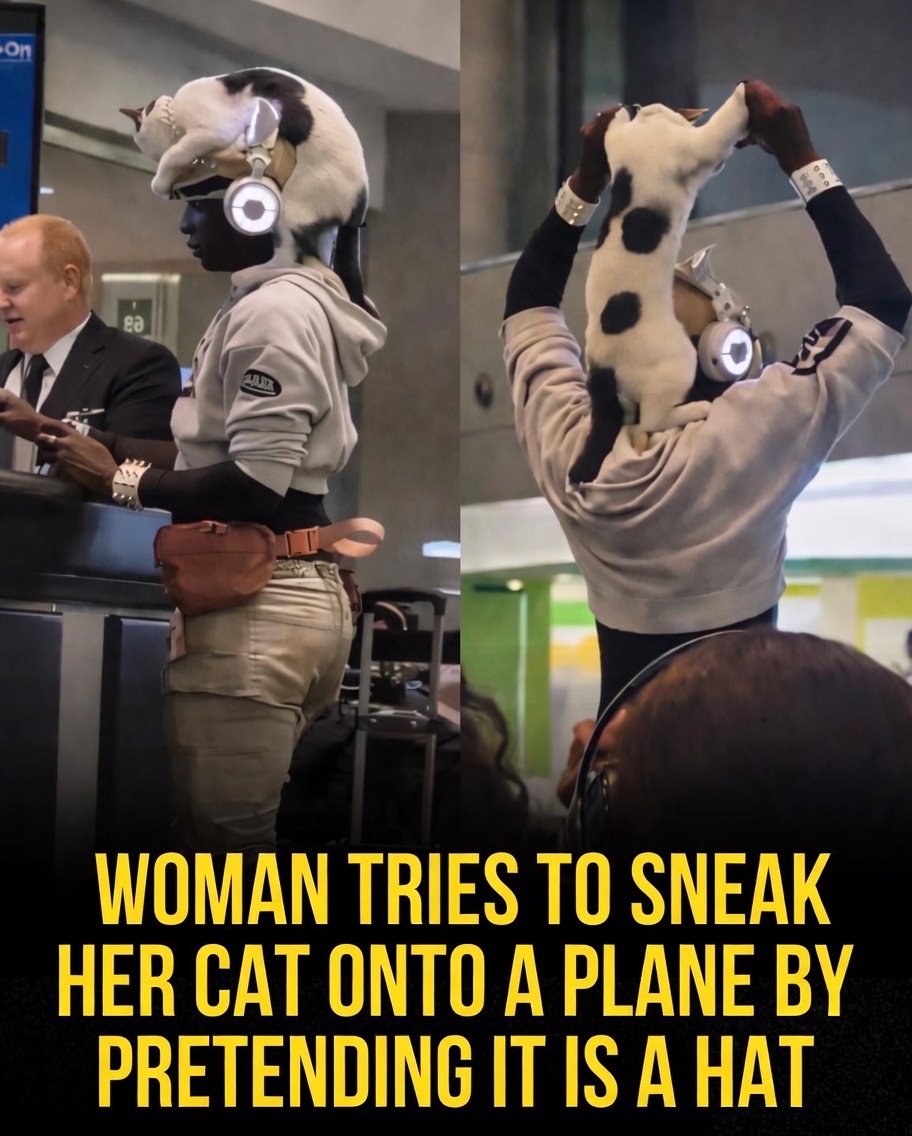In a scene that felt almost too surreal to be real, a woman stunned travelers by calmly walking through airport security with a black-and-white cat balanced perfectly on her head—as if it were simply part of her outfit. The incident, captured at Tampa International Airport, unfolded right near the screening area, where strict procedures are usually followed without exception.