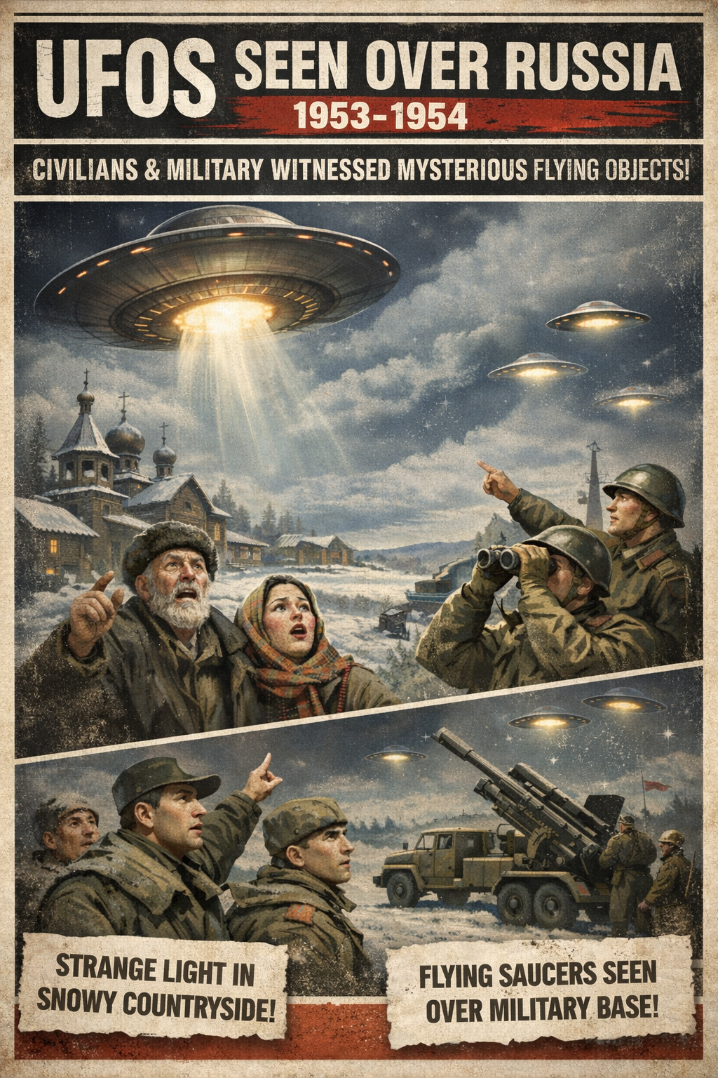 During the early years of the Cold War, reports of unidentified aerial phenomena—commonly referred to as Unidentified Flying Objects (UFOs)—began appearing in various regions of the Soviet Union. Between 1953 and 1954, several unusual aerial sightings were reported by civilians, military personnel, and pilots. Though many details remained classified or poorly documented at the time, later released intelligence summaries and historical accounts suggest that these encounters generated quiet interest among both Soviet and Western observers.
