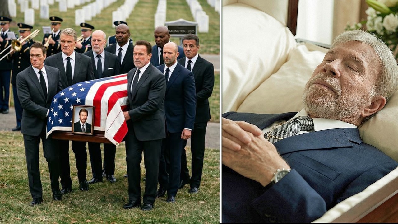 At the heart of this moment lies the casket of Chuck Norris, draped in the American flag, carried not only by soldiers but by the weight of a legacy that shaped generations. This is not just a funeral procession. It is a tribute to a legend, a final march for a man who defined strength in its purest form.