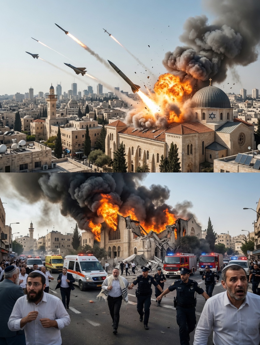 Israel is on edge after a powerful explosion tore through a crowded synagogue on the outskirts of Tel Aviv, in what officials are calling one of the most aggressive direct attacks ever launched onto Israeli territory. The strike reportedly involved a coordinated wave of cruise missiles and explosive drones, marking a significant escalation in regional tensions.