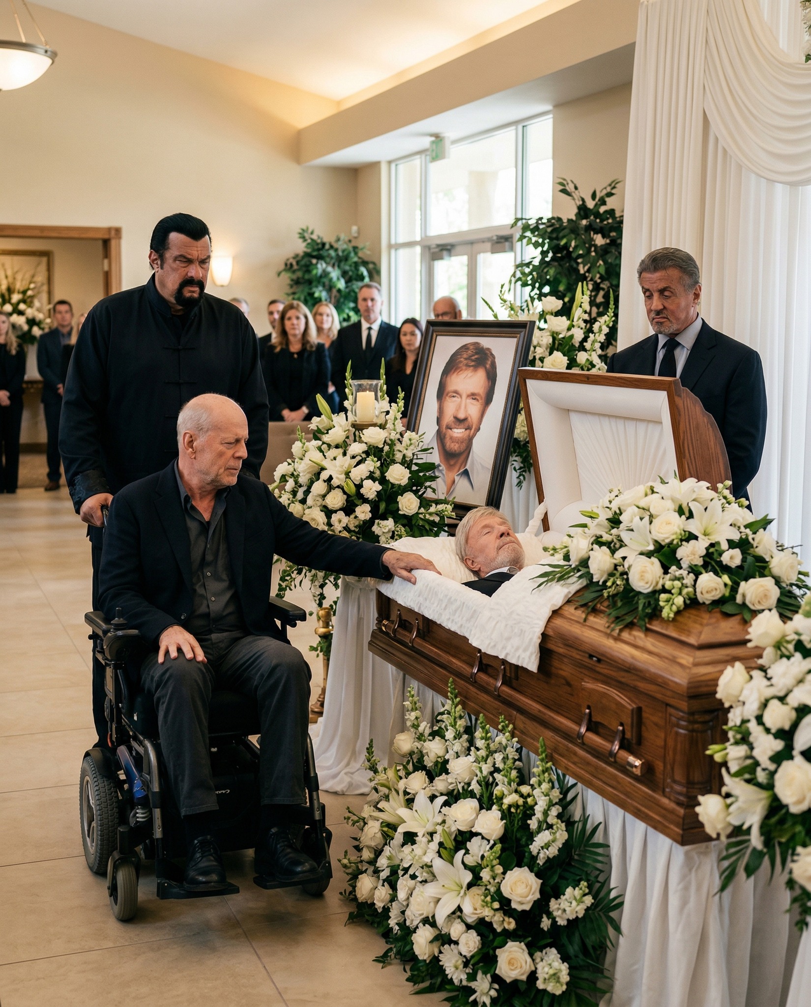 ** The Hardest Goodbye: Bruce Willis Fights Through His Own Battle to Say Farewell to Chuck Norris. Steven Seagal and Sylvester Stallone Couldn’t Hold Back Their Tears When They Witnessed that Heartbreaking Event **