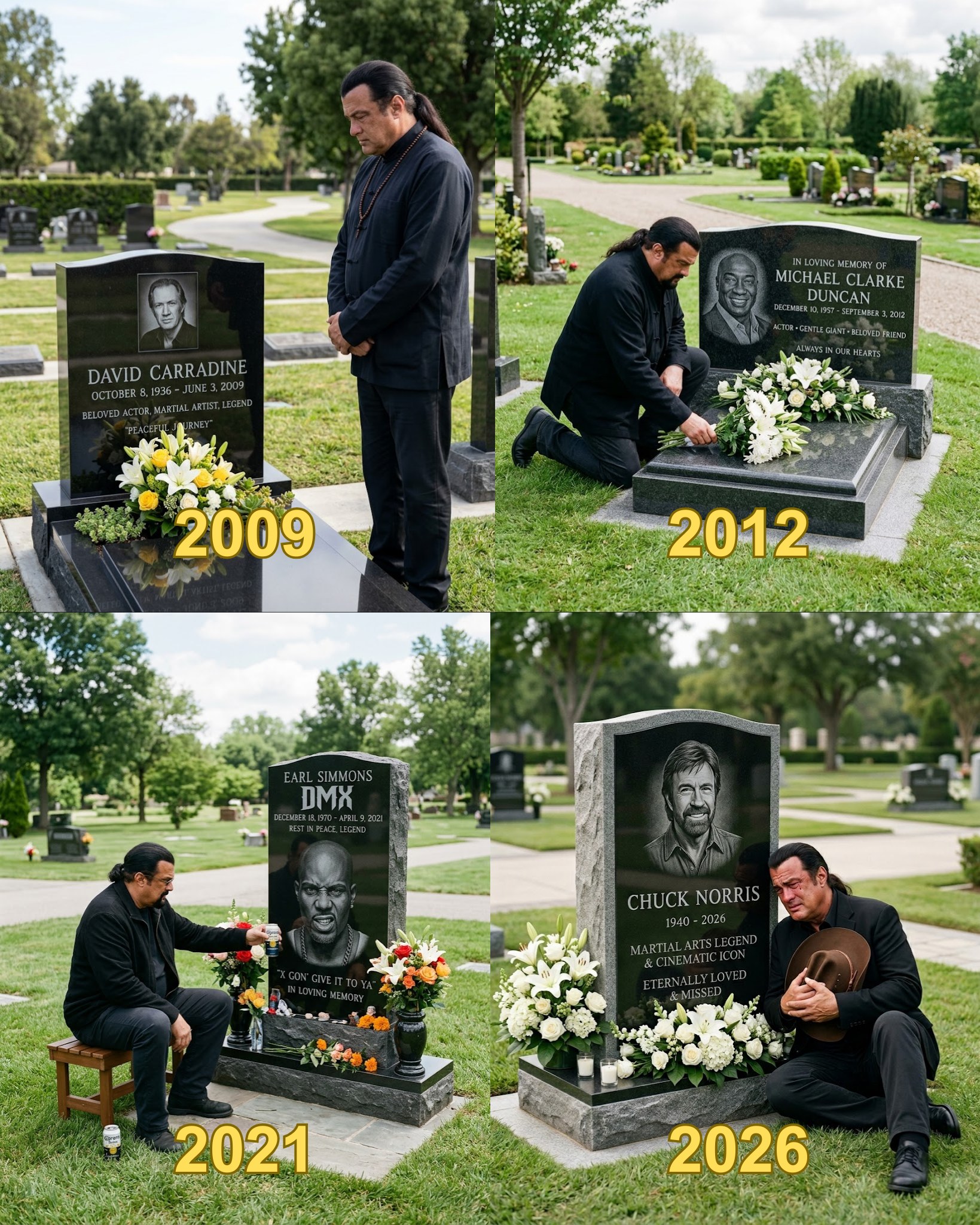 Four years. Four graves. Four men who called Steven Seagal their friend and whom Steven Seagal called, in the deepest sense available to a man of his particular emotional architecture, family.